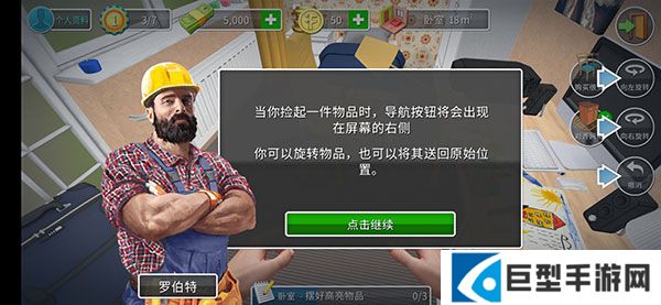 8、当你捡起一件物品时,导航按纽将会出现在屏幕的右侧,你可以旋转物品,也可以将其送回原始位置。