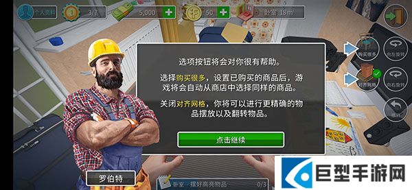 9、选项按钮将会对你很有帮助。选择购买很多,设置已购买的商品后,游戏将会自动从商店中选择同样的商品。关闭对齐网格,你将可以进行更精确的物品摆放以及翻转物品。