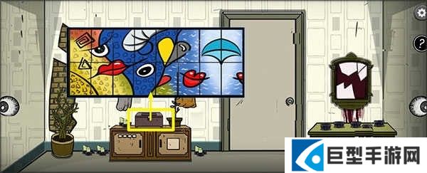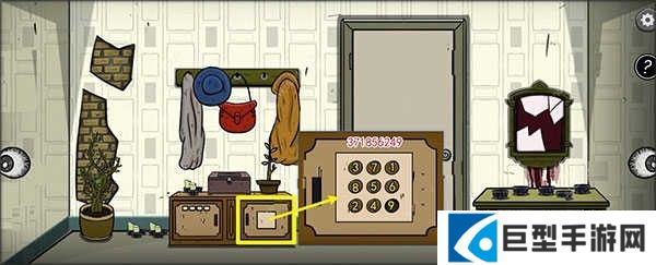 4、打开中央桌子下方右侧柜门,该柜需按特定顺序点击按钮解锁,正确密码为:371856249。开启后获得【美工刀】。