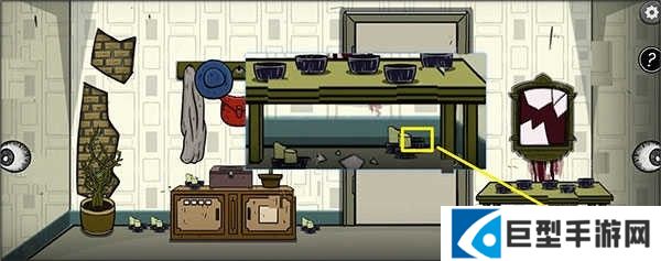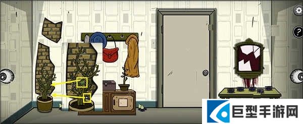 1、进入初始房间后,前往左下角的花盆处,拾取【树叶】和第一个【把手】。