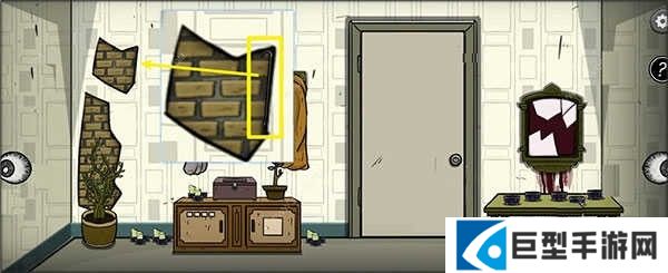 2、抬头查看左上方墙壁破损处,从中取出隐藏道具棍】。