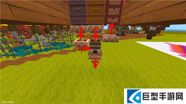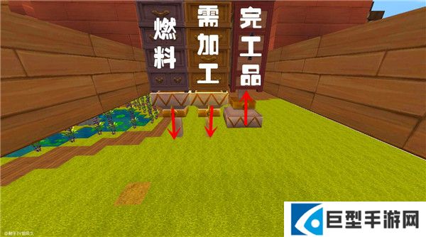3、放置漏斗+熔炉(如图)注意放置位置: