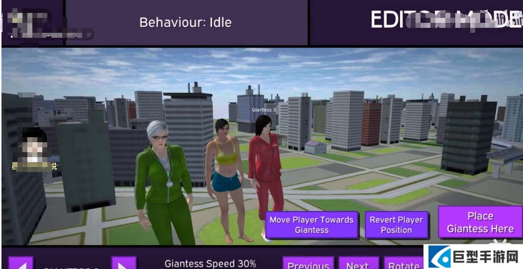 3.游戏中可以自由切换视角,观察巨大**各种行动,还能在编辑模式中将巨大娘放在特定的位置。