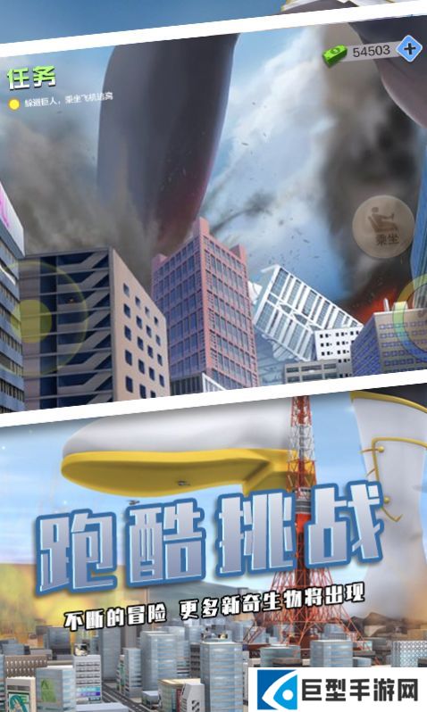 1.在场景中自由探索移动,注意观察周围巨大**行动路线,快速奔跑,移动到安全的位置,完成挑战。