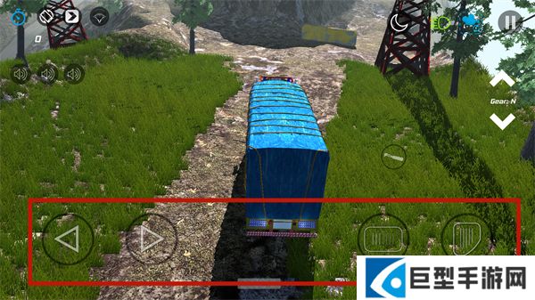 6、接下来小编以最常见的按钮操作为例,简单为各位小伙伴介绍一下操作方法。玩家可以通过下方的操作键控制车辆的前进方向,同时支持换不同的档位来完成倒车等操作,更多的玩法玩家可以进入游戏后自行探索哦!