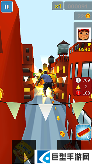 4、随机应变沉着应对,学会默数滑板的消失时间,以及优化跑酷路线(何时放开的捡道具、金币,何时选择安全路线为主)不要顾此失彼。