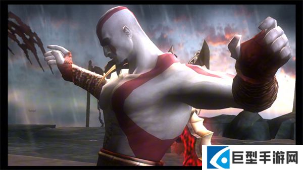 这时巨像七孔喷火终于算挂了,正在奎托斯和上帝叫嚣的时候遭到了“天谴”,奎托斯被砸的大口喷血丢盔弃甲,奎托斯此时HP极其低下,攻击也变得软弱无力,移动和跳跃简直变成了BIO里的丧尸一样迟缓,一步一步走向前去,会出来一个老大爷夺走奎托斯的武器并与之战斗,此时放弃抵抗,乖乖得让他抓住然后虐杀。