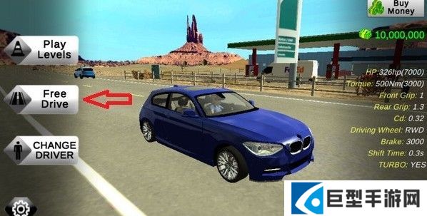 1、在游戏的主界面中点击游戏的“free drive”按钮,翻译过来就是“自由驾驶”的意思。