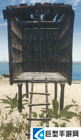 屋顶=1地基+4 木棍+4棕榈树叶