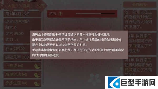 2、进入游戏界面之后,会自动进行游力,遇见人和事;