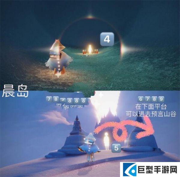 6、后面4个在石台上往下看有一个平台,再往右看可以看到有个洞口进去就可以到达预言山谷,预言山谷的小金人需要完成任务才可以获得。