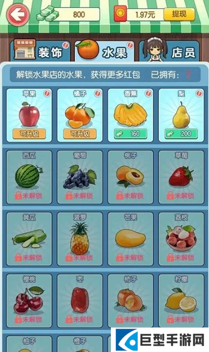 2、解锁新的水果,增加售卖水果的种类