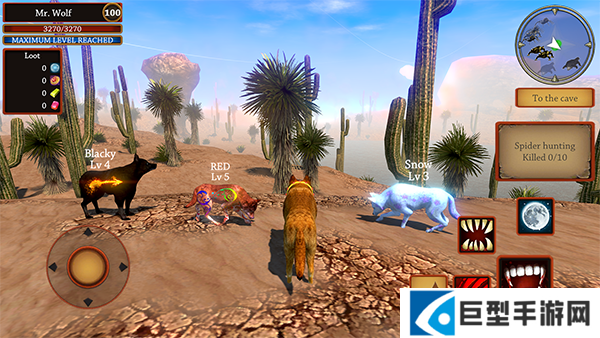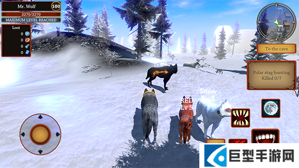 3、幼狼培育系统要求玩家亲自示范捕猎技巧,快速提升狼族能力。
