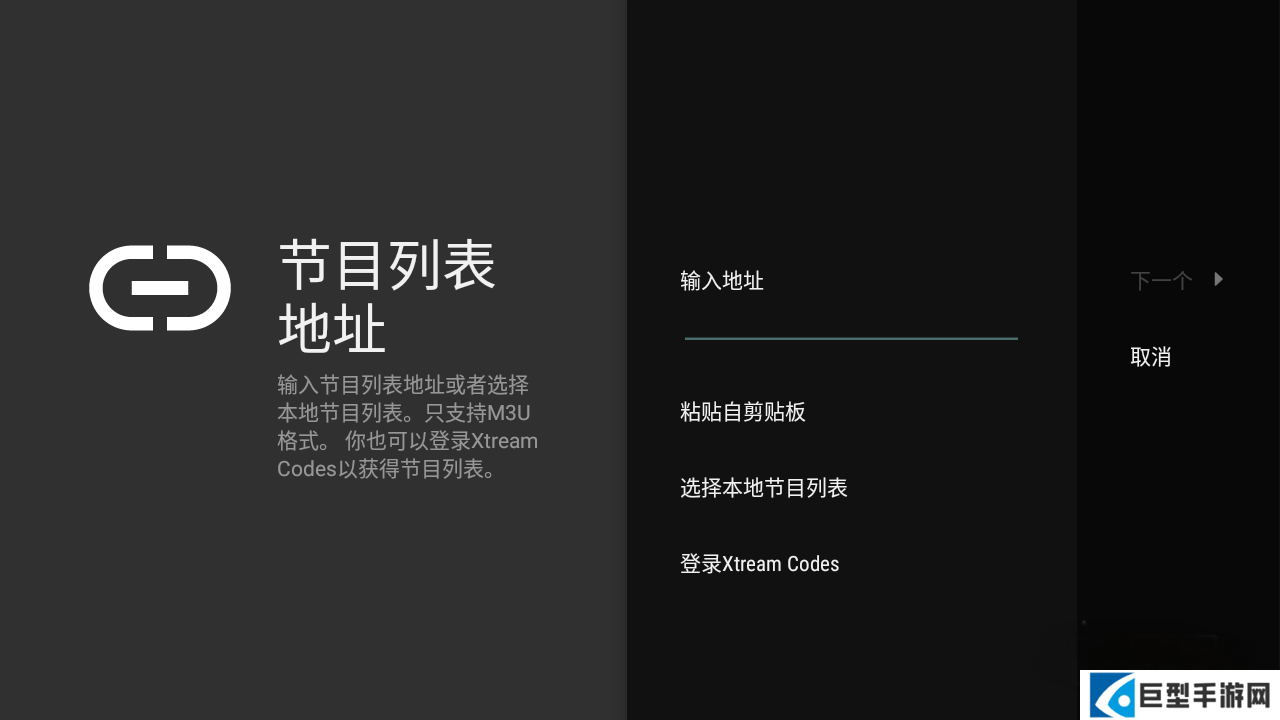 >然后在输入地址栏中输入节目源地址(即IPTV / OTT提供商的播放列表),然后点击下一个;