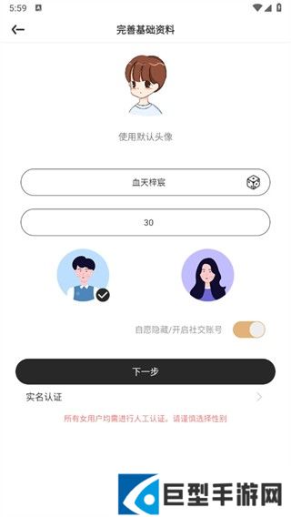 3、最后来到完善基础资料的页面中填写好信息后点击【下一步】;