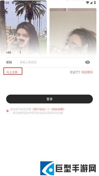 1、首先打开海角社区app,打开之后在登录的页面中点击【马上注册】;
