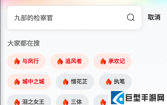 2、输入想看的影视剧名称,例如九部的检察官,然后点击输入法键盘上的回车按钮