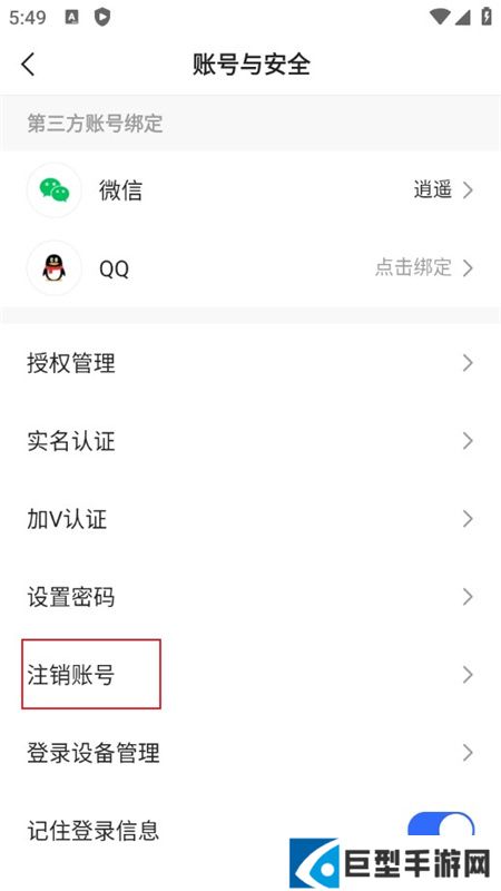 5.在账号与安全页面中,找到"注销账号”选项,点击进入。