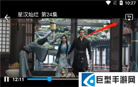 2、在视频播放界面,点击右上角【TV】按钮,在选项页面中点击【投屏】按钮;