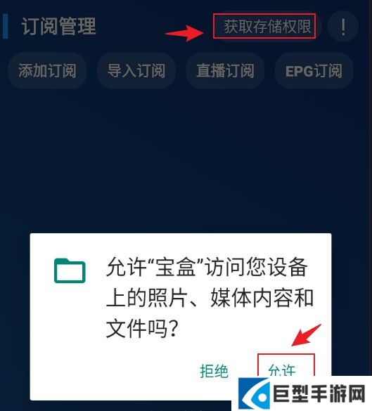 3、进入订阅管理界面后,需要打开手机的存储权限;