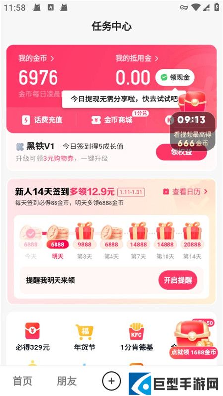 2.现金奖励:用户可以通过完成各种任务,如观看视频、分享视频等,获取现金奖励。