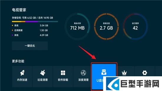 3、将U盘插到小米盒子上。选择【电视管家】
