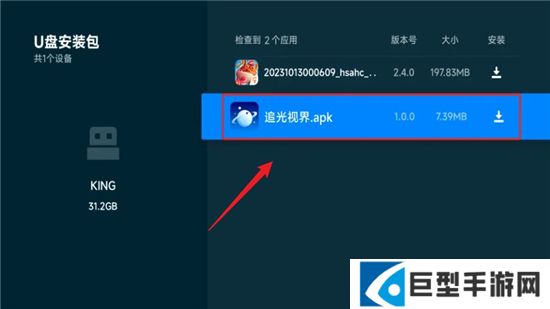 1、下载完成追光视界后,将安装包复制到U盘,拔下插入电视后方USB接口;