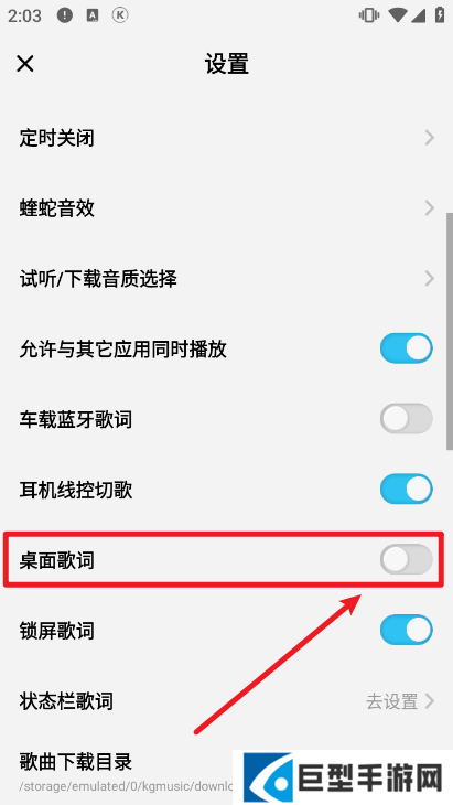 3、进入设置后,下拉找到【桌面歌词】打开即可。