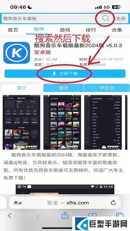 酷狗音乐车载版安装到汽车上的操作教程:1、在您的手机上下载并安装酷狗音乐车载版应用。您可以从本站(http://www.xlhs.com/)中搜索"酷狗音乐车载版"应用并进行下载安装。