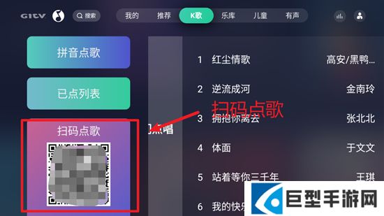 3.看左下角有个扫码点歌的二维码,拿出手机打开qq音乐手机客户端,扫描二维码就可以在手机上点歌了