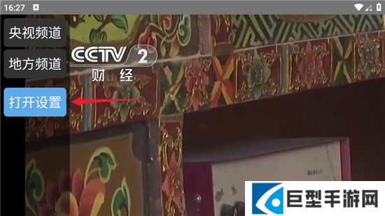 1、进入软件主界面,用遥控器下键调出左边的菜单,选择打开设置;
