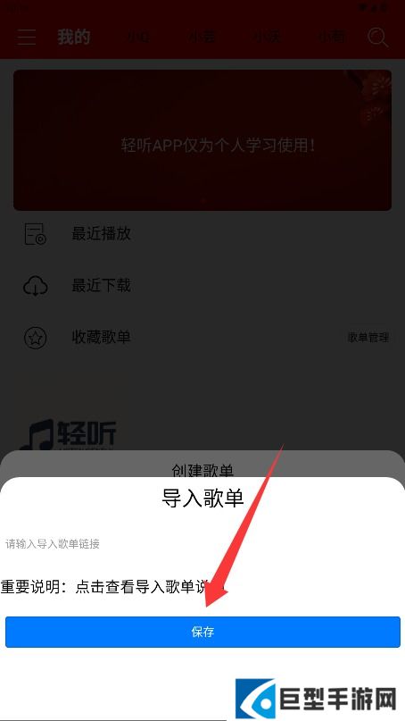 4、粘贴其他音乐平台的歌单分享链接,导入歌单的连接保存即可完成歌单导入。