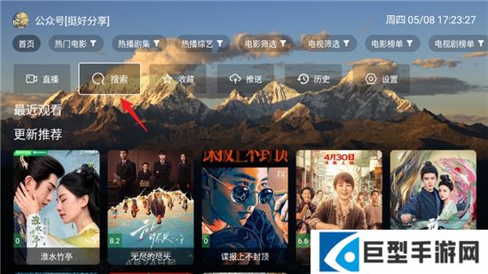 2、进入软件主界面后,找到主页中的搜索选项,点击它;