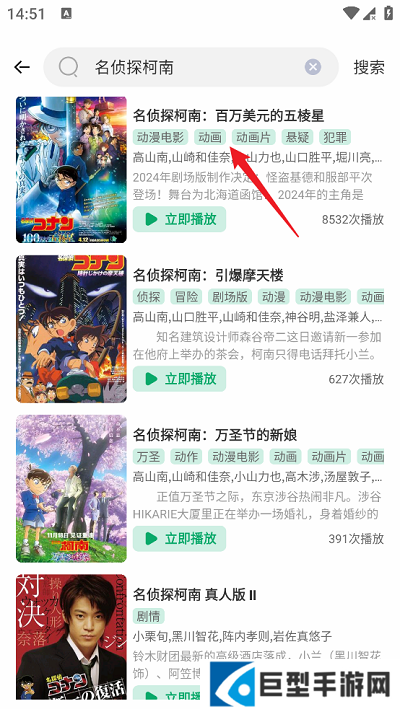 1、比如我想看《名侦探柯南:百万美元的五棱星》这部剧场版动漫,在APP内搜索框搜索找到这部剧场版视频;