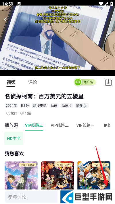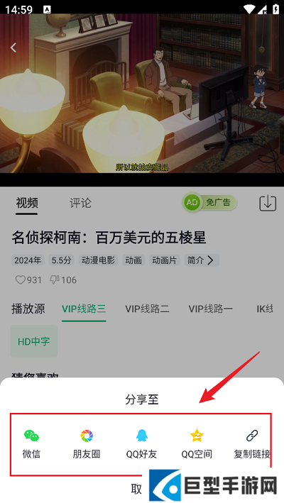 1、还是以名侦探柯南视频举例,进入视频页面,点击右下角的分享按钮;