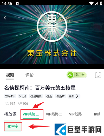 3、比如这个VIP线路三,这里就有HD中字画质,这里就是高清画质的视频源啦!