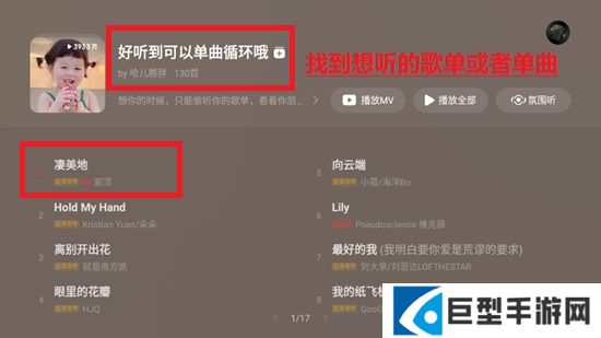 网易云音乐电视版进入和推出氛围听最新版教程:1、进入app,找到你想听的歌单或者音乐