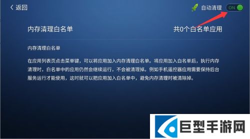 4、进入后通常有“自动清理”开关,点击右上角图标或滑动按钮即可开启该功能。