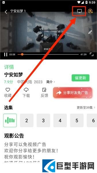 2、找到想看的影片后点击进入,选择投屏标志即可投屏
