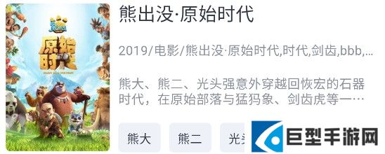 1、打开海鸥影评app,找到并点击喜欢的影视,进入播放界面,例如熊出没之原始时代