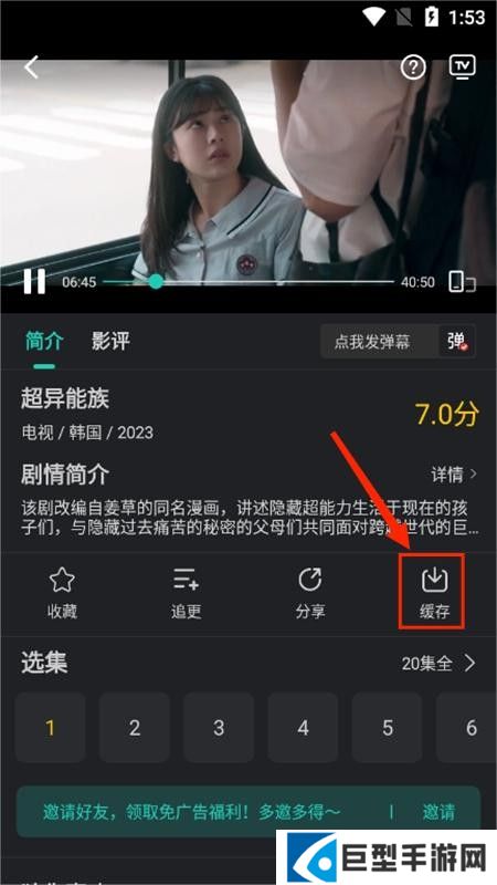 2、点击简介右下角的缓存按钮