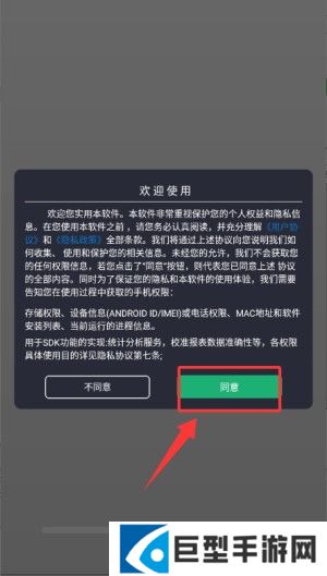 1、在用户协议和隐私政策提示中点击"同意",即可进入应用。