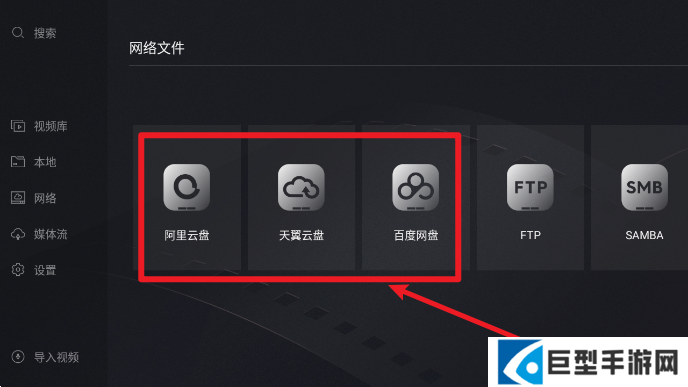 2、进入【网络】界面后,根据自己的需求,选择网盘导入。
