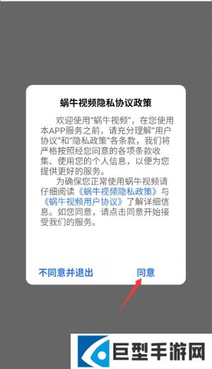 蜗牛视频app最新版怎么登录1、首次启动应用时,系统会显示用户协议和隐私政策,阅读后点击同意按钮进入主界面。