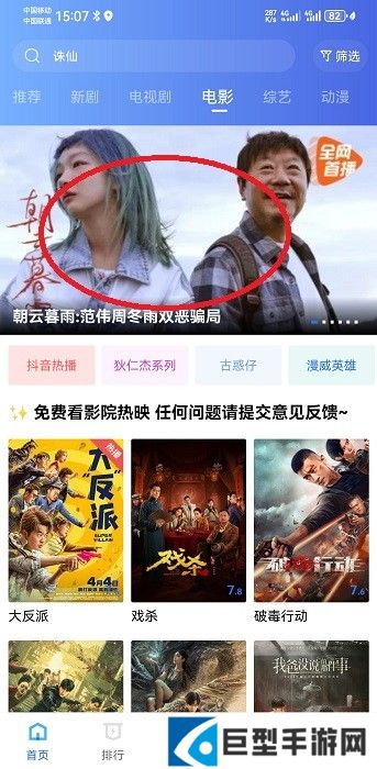 2、无需登录,在首页点击“电影”栏目;