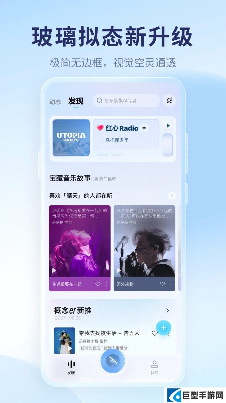 酷狗概念版是款专为沉浸式听觉体验而生的音乐应用,主打“轻量设计+沉浸播放”双驱动理念。不仅支持歌词沉浸环游、玻璃拟态播放界面,还能在音乐播放中自由DIY专属皮肤卡片。无论你喜欢华语、欧美、日韩还是纯音乐,酷狗概念版都能带你找到最合适的节奏。