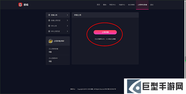 2、登录好自己的账号后进入到上传界面,点击上传伴奏。