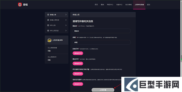 3、然后填写好相关消息,上传好伴奏文件点击亮起的上传伴奏就可以了。