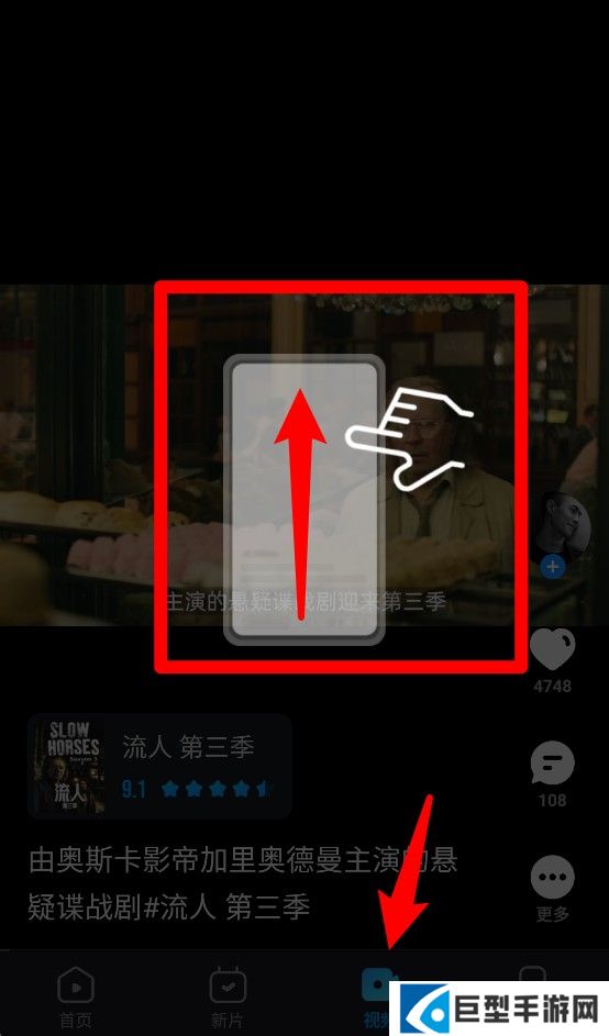 3、在“视频”栏目中可上下滑动切换短视频内容,操作方式通过动画手势提示一目了然。