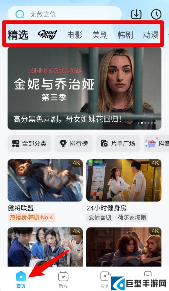 使用指南1、点击首页选项,可浏览推荐影视内容,并通过顶部标签快速切换电影、美剧、韩剧、动漫等不同分类。